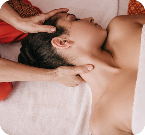 Masaje enfocado en liberar la tensión muscular acumulada en la zona alta del cuerpo. Se aplican técnicas como amasamientos, fricciones y presiones para trabajar la musculatura, mejorar la circulación, y aliviar molestias causadas por estrés, malas posturas o movimientos repetitivos.